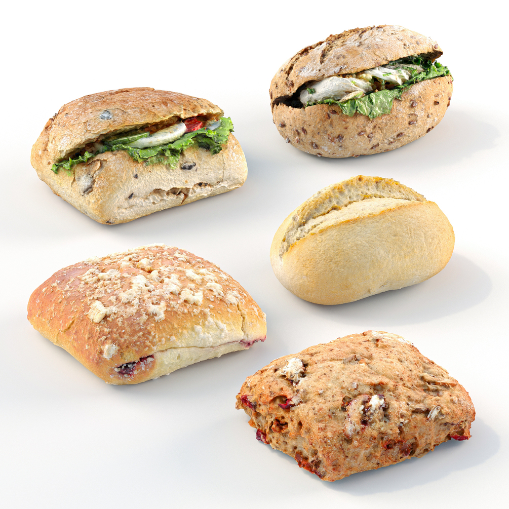 Photogrammetry based set of 3d rolls and sandwiches.